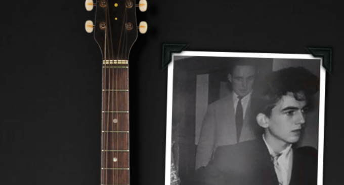 One of the highly anticipated items of the auction is George Harrison’s first electric guitar, a Hofner Club 40 not seen since 1966. Harrison played the small blonde with black body binding single–cutaway hollow body instrument in the early days of The Beatles when they performed around Liverpool, England as The Quarrymen. The group had been transitioning from a skiffle band using acoustic instruments to a rock and roll band playing on electric instruments. John Lennon and George Harrison were the first to acquire electric guitars, which were almost identical Hofner Club 40 models. Harrison traded his big Hofner President model acoustic archtop jazz guitar for the Hofner Club 40, with Ray Ennis a member of The Swinging Blue Jeans to acquire his Club 40. Harrison played the guitar with Paul McCartney, John Lennon and Pete Best and Ken Brown, who were band members at the time, at The Casbah Coffee Club, a teenager’s social club in Hayman’s Green, West Derby.