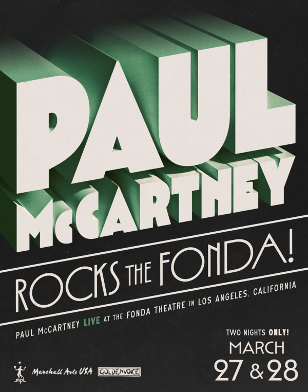 PAUL McCARTNEY ROCKS THE FONDATWO NIGHTS ONLYMARCH 27th & 28th, 2026 AT THE FONDA THEATRE IN LOS ANGELES, CAREGISTER FOR FAIR AXS TICKETSIn his first live performances since the finale