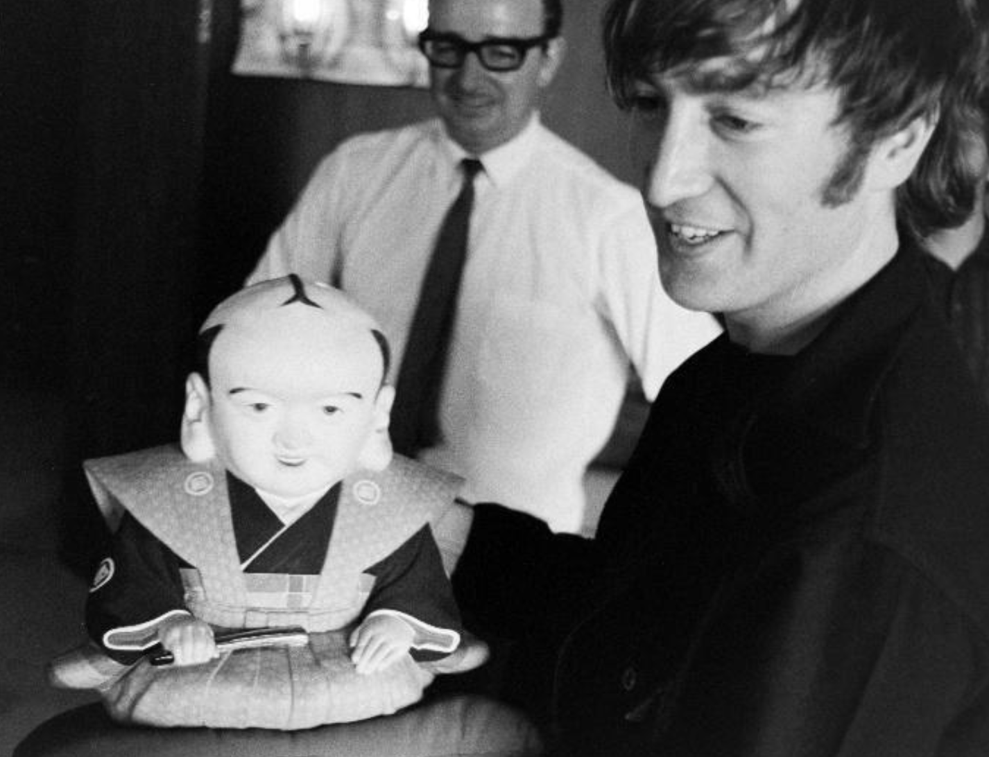 Photo taken during the Beatles’ tour of Japan in 1966 shows John Lennon smiling with a Japanese doll in his hand. Image: Nippon Budokan/Kyodo TOKYO Nippon Budokan said Monday it