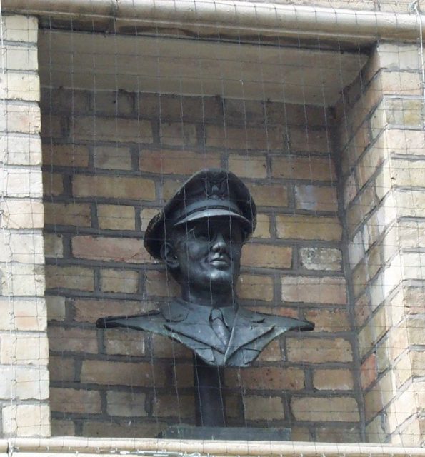 Bust outside the Corn Exchange in Bedford, England, where Miller played in World War II.