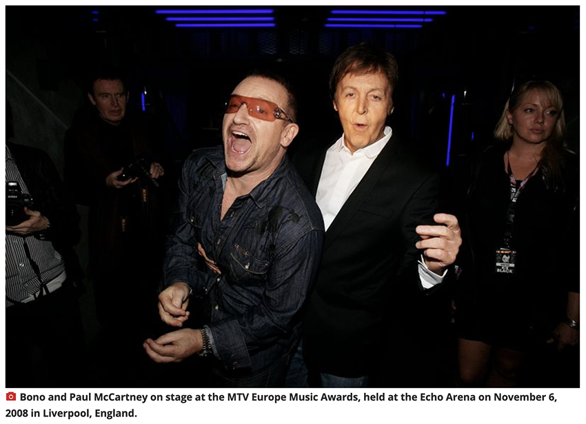 Paul McCartney drove Bono to the MTV music awards in Liverpool – Liverpool Echo