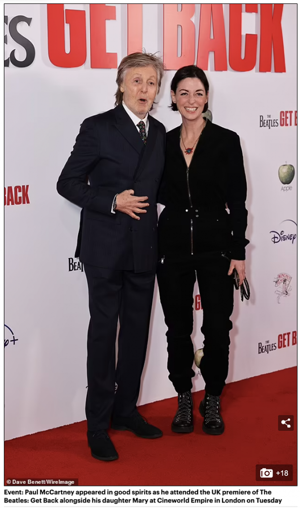 Paul McCartney, 79, is joined by daughter Mary, 52, at premiere of documentary The Beatles: Get Back | Daily Mail Online