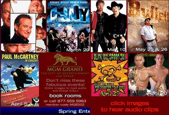 MGM Grand NetSpot CampaignsLas Vegas Casinos are world renown for their marketing and customer retention skills. In 2001 MGM Grand Las Vegas hired McCartney to make e-mail marketing more interactive. At the time only text and graphic emails were sent through email pieplines.We saw an opportunity and created the firstNetSpotĀ®. We took basic Flash design and created animation, measured interactivity through action scripting and tested our user interface design (UI) by constantly keeping consumer acceptance in mind. The created NetSpots arrived in the users email inbox and through programming we could track open rates, clicks, impressions and preference behavior.