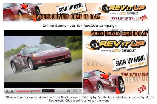 Fashioned after the existing web site, these banners were sent to an interactive campaign near you. Besides creating the video and online marketing presence McCartney also handled all the outgoing communications to over 800,000 Chevy fans per email blast! Stay tuned to RevitUp 2008!