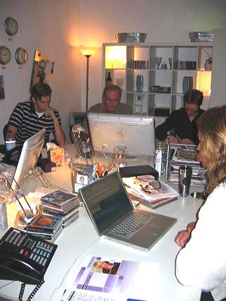 Here we are in the middle of a brainstorming session about various agenda items. From web site configuration issues to pre-launch marketing ideas, our entire day was filled with tremendous creative energy. It is truly exciting when a client such as "Mr.Cheese" is totally hands on about his own project. The goal is to create a deep, layered internet environment not only for the visitor / fan, but also to develop an EZ administrative toolset for backend update functionality, so John can participate daily in freshening his own content, ideas, memos etc.