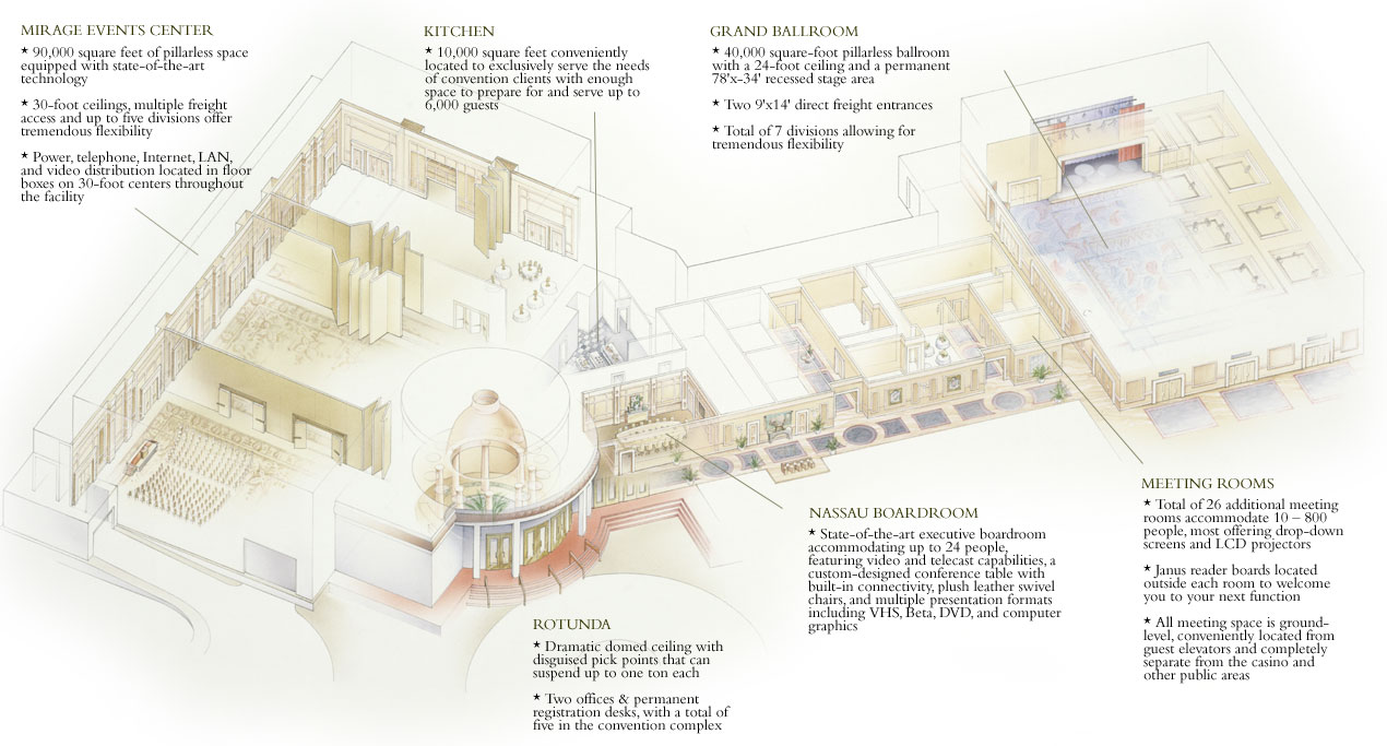Artist's rendering not to scale. Illustration does not show entire convention area. Please reference convention Floor Plan and Capacities page for true proportions, dimentions and layout.