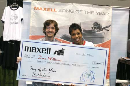 Zane: Macy helped to present the Maxell Song of the Year grand prize for the John Lennon Songwriting Contest to songwriter/performer Zane Williams of Nashville.